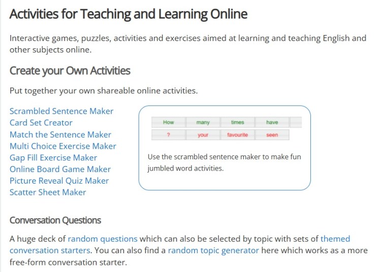 - Padlet (After a free trial, you need to subscribe to this useful tool for gathering together lesson resources or images.)